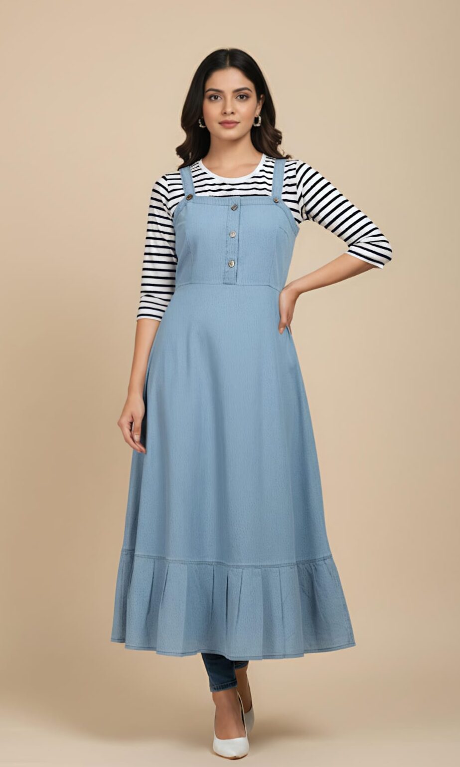 – Dress Style: A-line dress with a ruffled hem and buttons down the front